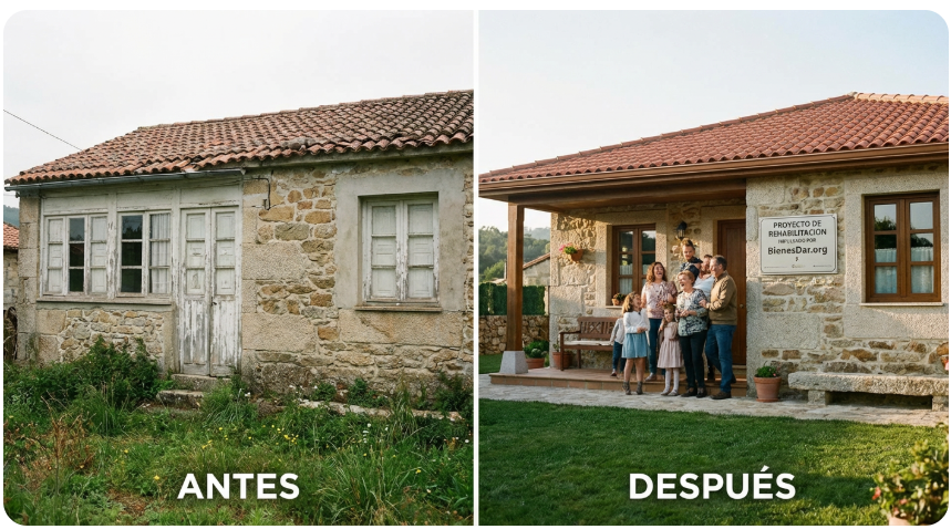 Desde BienesDar.org impulsamos este proyecto pensado para recuperar casas en pueblos que hoy están vacías, deterioradas o sin uso. Nuestro objetivo es que vuelvan a ser viviendas habitables mientras apoyamos a familias con necesidad real de hogar y fortalecemos la vida en las zonas rurales.